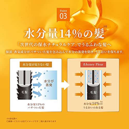 This shampoo and hair treatment set from the "Fragrant Honey Beauty" line focuses on the hair's moisture content of 14%, taking care of any unpleasant odors from the hair and scalp. It employs a unique structure that offers a 140% increase in fragrance longevity, making it the most fragrant in the series. The product is composed of over 90% moisturizing and fragrant ingredients such as honey and high-penetration hyaluronic acid, providing a relaxing scent from the scalp to the hair tips and leaving your hair soft and fluffy. The shampoo has a fragrance of Osmanthus Honey, while the hair treatment has a Mimosa Honey scent. It is also free of additives.